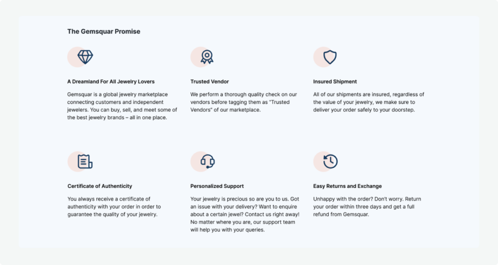 We introduced the “The Gemsquar Promise” title to the block with the advantages’ list.