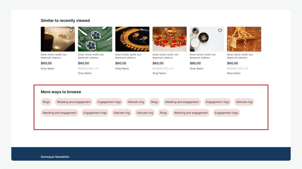 Now, the “More ways to browse block” is displayed in the bottom part of the category page’s main content. This block contains the most popular product tags in this category.