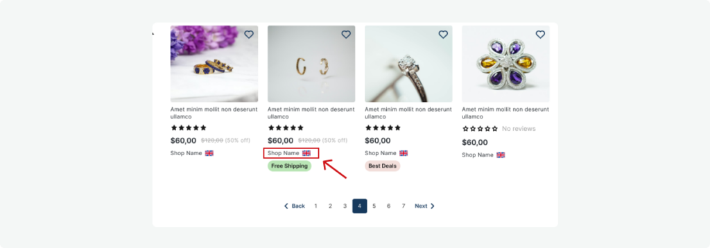 We added the vendor name and vendor’s country flag icon to the product in the product lists and product blocks.