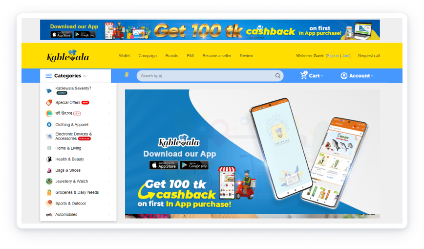 We applied changes in the KABLEWALA site design. The modifications touched banners and categories.
