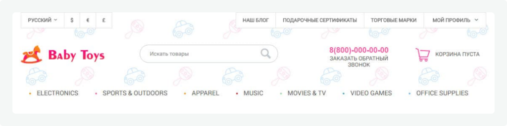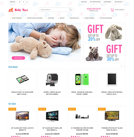 The client chose this theme for the online store because the color pallette was similar to his old site and perfectly suit his niche. The key feature of the Cute Baby Toys Theme is that it is secure and safe in servicing because it does not contain heavy and complex functionality. It has several advantages: easy installation, easy updating, compatibility with all third-party add-ons, quick page loading and other features that keep store safe and nice.