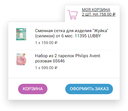 The mini cart is made according to the common design of the store and helps customers to preview the contents of the cart on the main page.