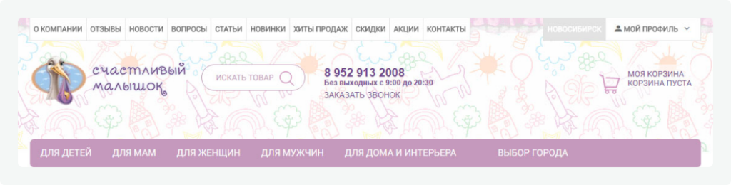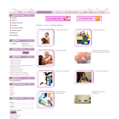 For the home page we changed the main banner, making it more attractive. The previous banner was old-fashioned and uninformative, so we decided to show products and highlight free shipping, discount programs, gifts and other important information in the picture. The photo of a nice baby attracts customers’ attention.