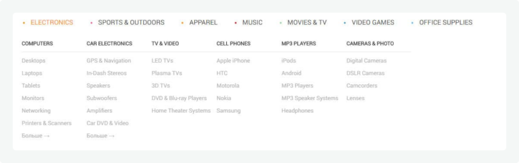 The previous menu was unattractive and unhandy for customers, with megamenu we solved the problem of navigation. Its simple design with a minimal look do not confuse customers and focus attention on the product categories.