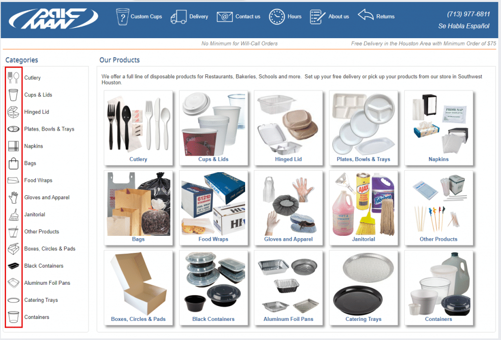 We created the “SD: Categories block advanced” add-on to allow the store administrator specifying the icon width and height in the block settings. Our developers are always happy to guide business owners. We give recommendations that help our customers without a need to address us for further assistance. That was the case when the store owner asked us about instructions on how to add a specific icon to a product category. By the way, some of the category icons were developed by Simtech developers. They look simple and clean and complete the overall design of the pak-man.com website. The simpler the design is, the less diverting the elements are, the better is the user experience and interface. The overall look-and-feel of the store fulfilled these goals.