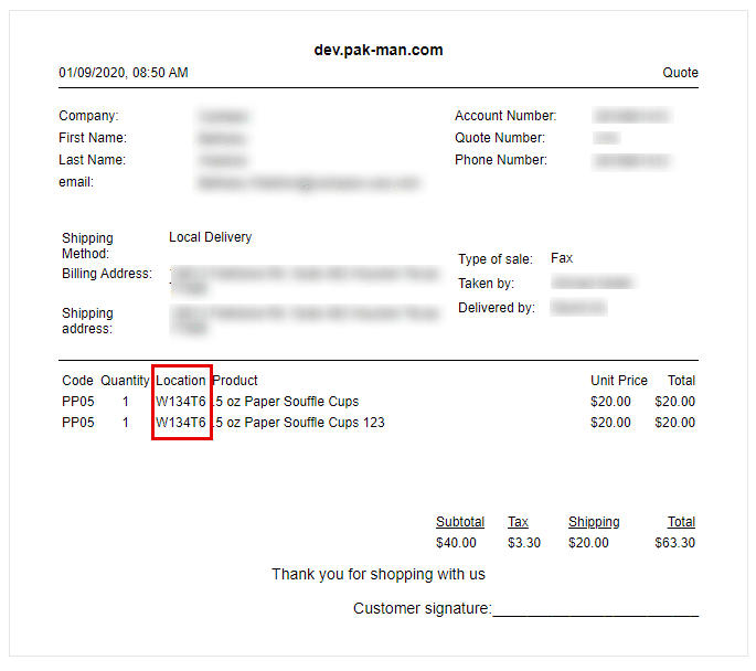 The same ID obtained using the “Location” functionality is included in the order invoice next to the product name which helps the storekeeper to easily find this product.