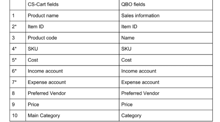 Connecting the CS-Cart platform to QuickBooks Online makes it easy to track the bookkeeping operations in a single dashboard. The Simtech Development standard add-on allows integration of QuickBooks app via API but only for the most general entities like products, orders, and customers. However, if additional actors and features are required, only customization will help. Before connecting, a mapping table is required to understand which objects to align in both pieces of software: CS-Cart and QuickBooks. We synched extra objects for pak-man.com for better trackability. You can see the mapping lists below. An asterix marks additional fields as compared with the standard integration add-on functionality.