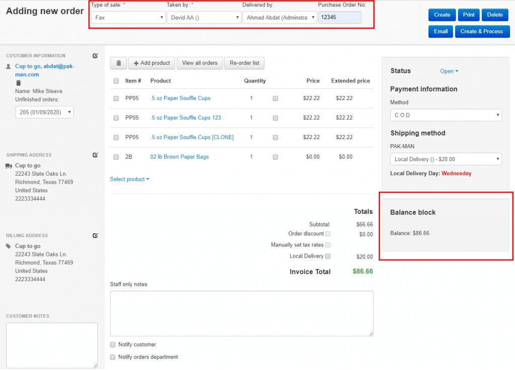 Product/Service, SKU, Description, User name, Email, Billing and Shipping address are added automatically from Customer/Product transfer. We exported new orders from CS-Cart to invoices in QuickBooks Online and updated them accordingly.