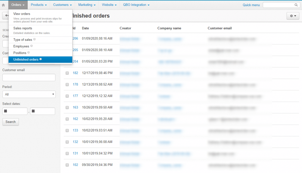 If the order has no products, such an order is not saved to the “Unfinished Orders” list. If the admin removes products from the saved unfinished order while editing it and leaves without saving it, such an unfinished order is removed from the list of unfinished orders.