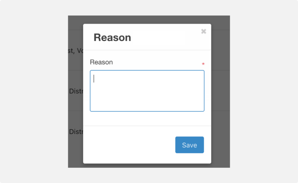 When the vendor status is changed, the system generates a notification with an input field to indicate the reason. If the status is changed manually, the administrator specifies the reason.