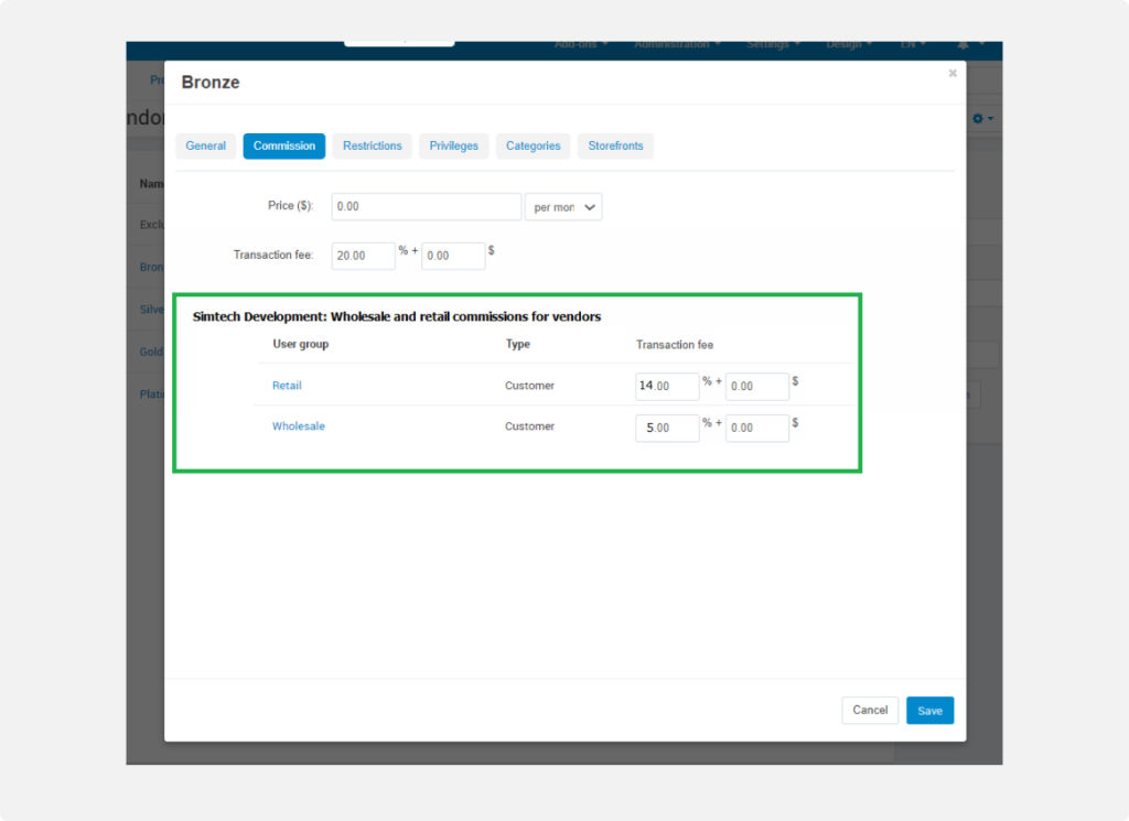 After many deliberations, the Your Mart team reverted to us for modification. So, we did. The modification was made dependent on the “Vendor plans” default CS-Cart add-on. We added new settings to the Commissions tab of the Add/Edit vendor plan page. These settings allow the admin to set vendor commissions depending on the customer user group of customers who buys the vendor’s products.